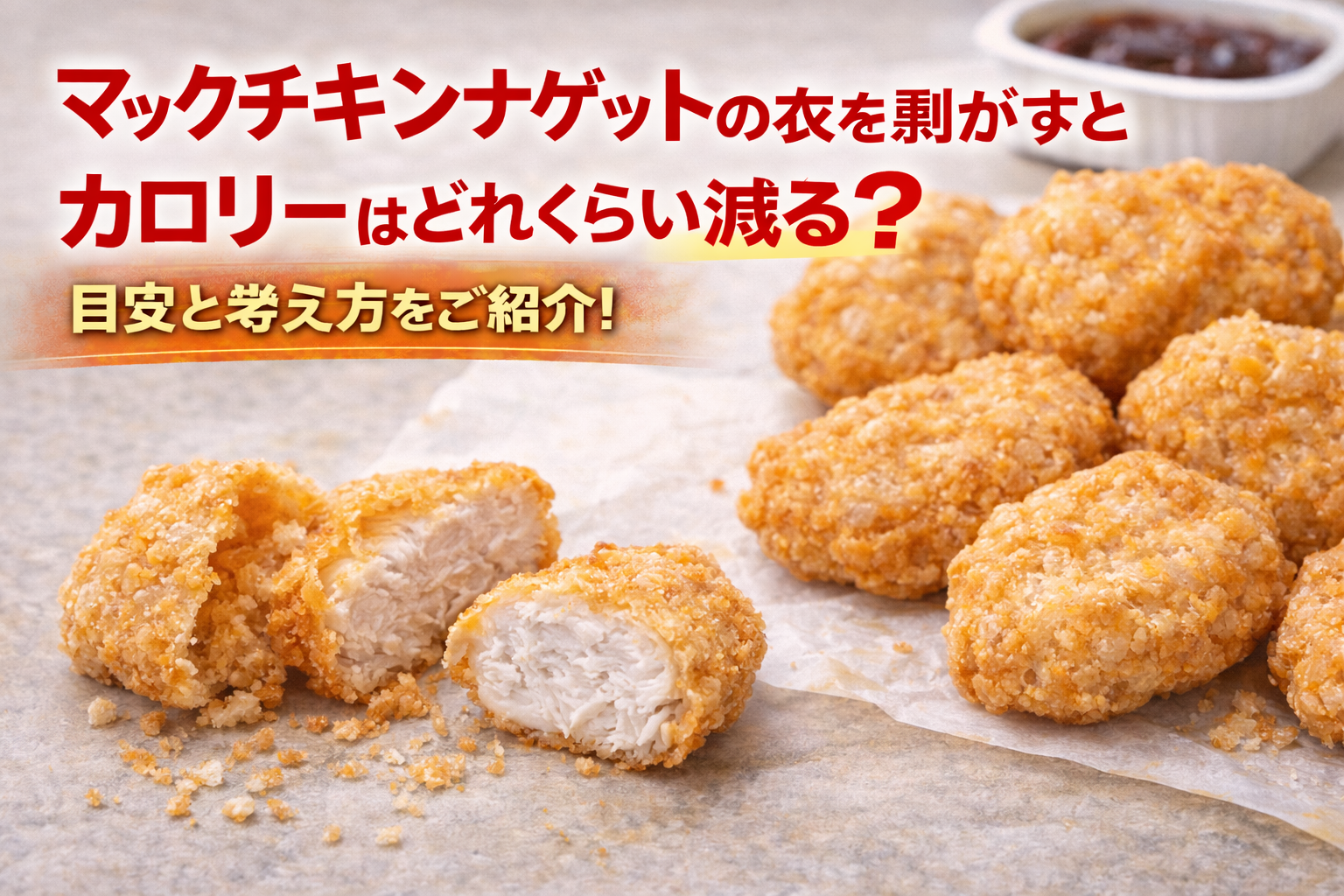 ただし、揚げ油は中身にも移るので「衣を剥がした=焼き鳥レベルに軽い」にはなりません。だからこそ、現実的には衣+ソース+飲み物+サイドまで含めて調整するのが強いです。もし「ナゲット欲」を上手に処理したいなら、衣を剥がすのは十分役立つテクニックなので、無理のない範囲で試してみてください。