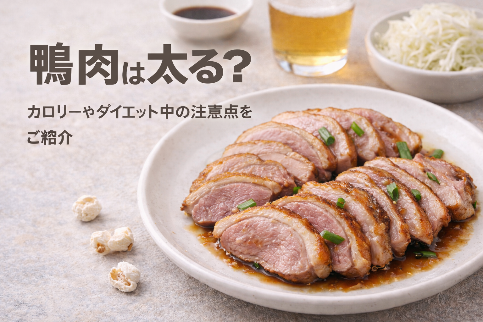 鴨肉は脂質が高いため食べ過ぎれば太ります。しかし、皮を外し、量を守り、主食とのバランスを整えれば、ダイエット中でも十分楽しめる食材です。